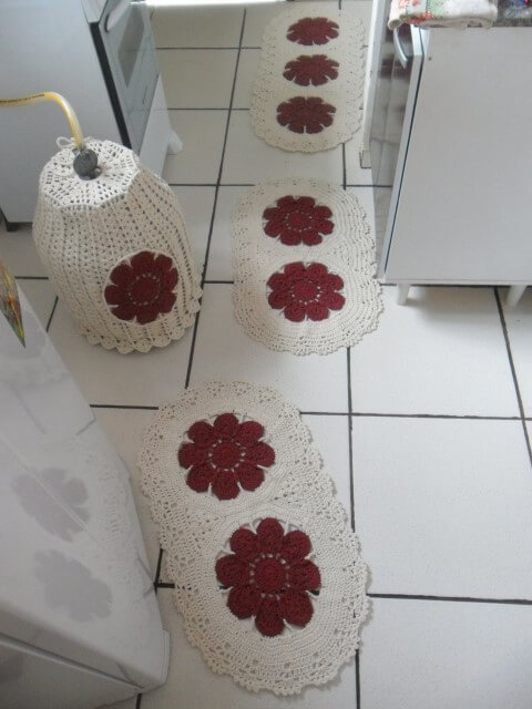 Jogo Tapete Cozinha Dalias No Elo7 Croche Fascinio Loja Virtual