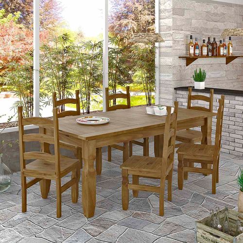 Conjunto Mesa 1 82m E 6 Cadeiras Rustico Corona Madeira Macica