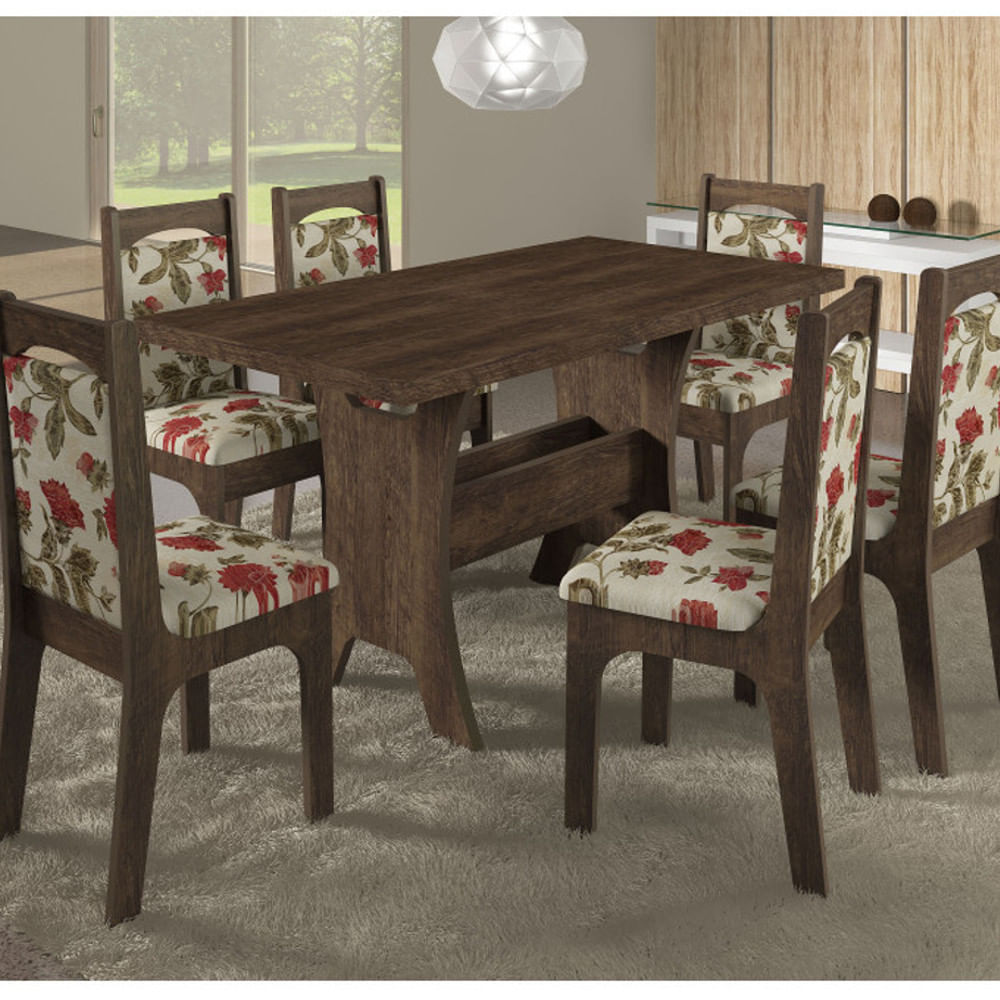 Conjunto Sala De Jantar Madesa Jaine Mesa Tampo De Madeira Com 6