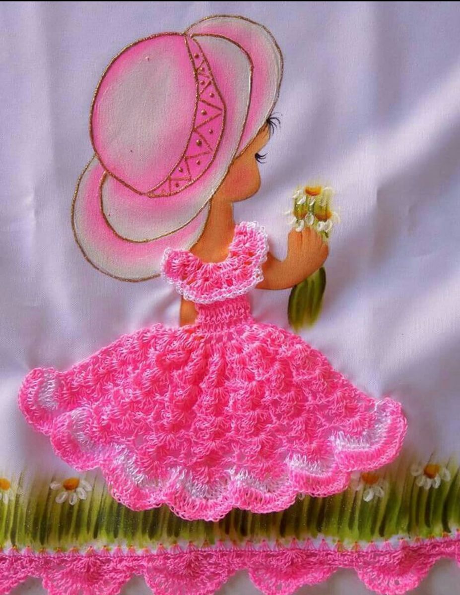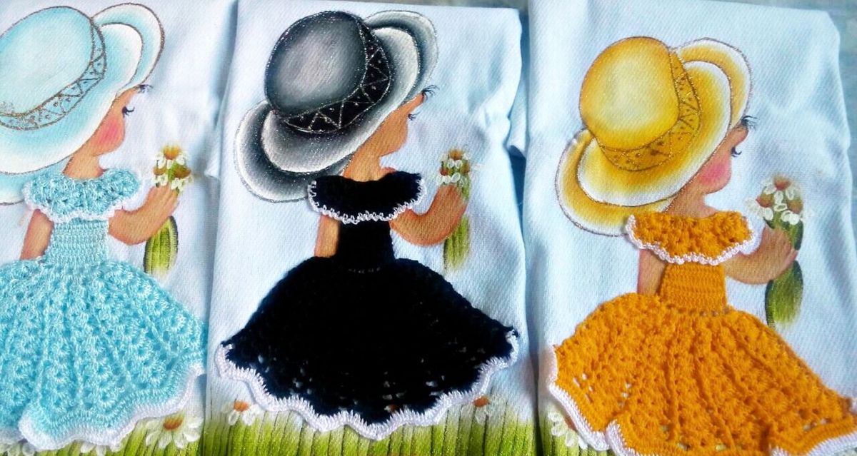 Bonecas Pintadas Com Saia De Croche Croche Pano De Prato