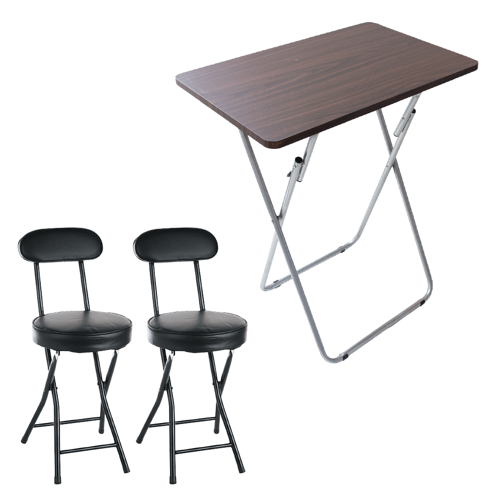 Kit Mesa Dobravel Madeira Escura 2 Banquetas Dobraveis Com