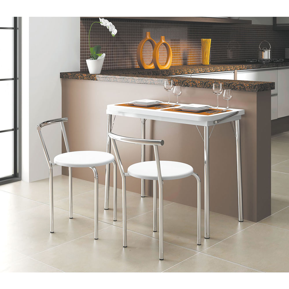 Kit Mesa Dobravel Retratil 120x75 Branca 2 Cadeiras Charles