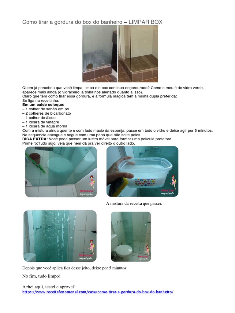 Como Tirar A Gordura Do Box Do Banheiro Minha Casa Organizada