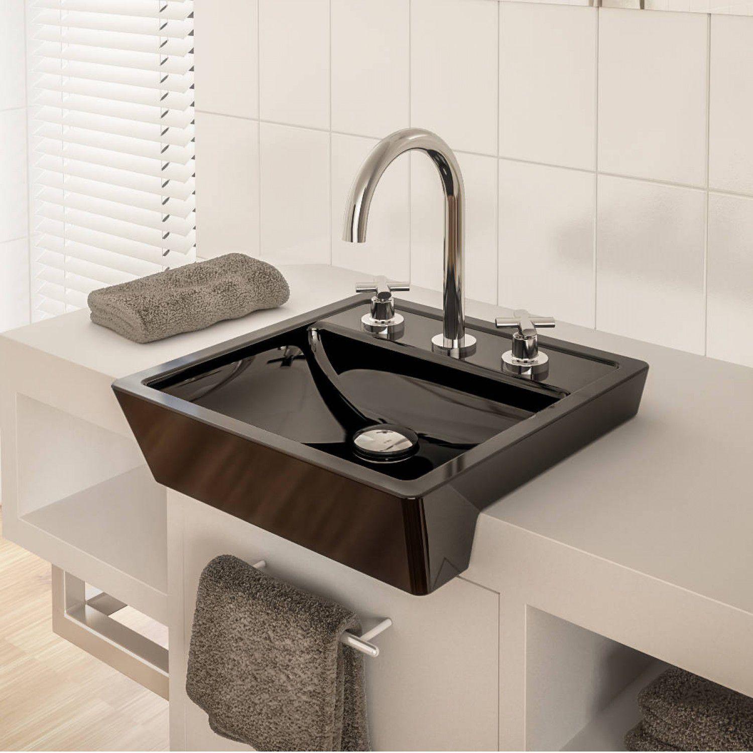 Cuba P Banheiro Trevalla Xq395w Semi Encaixe Quadrada Preta Nas