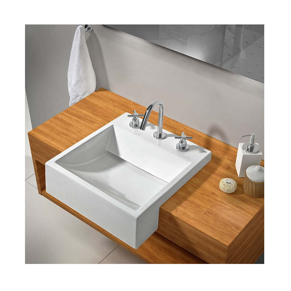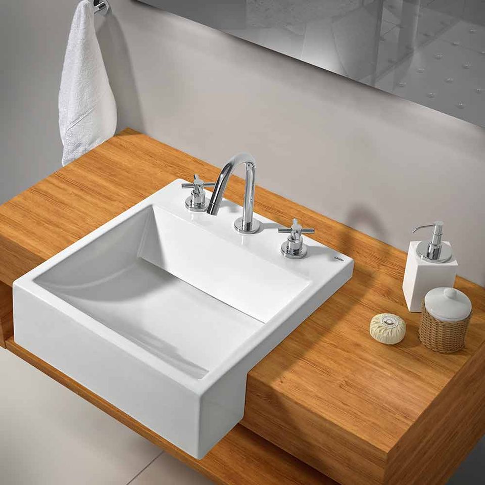 Cuba Semi Encaixe Deca Quadrada Branca Com Mesa 42cm L830 Padovani