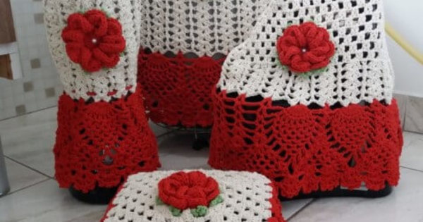 Jogo De Banheiro De Croche Coruja Flores Vermelho E Mais