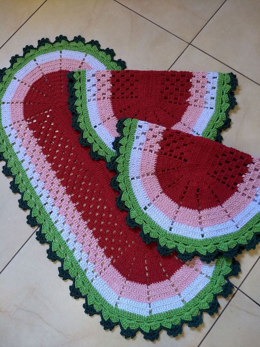 Jogo De Tapete Cozinha Croche Melancia Item De Decoracao Valeria
