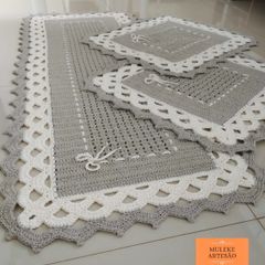 Jogo de tapete de croch㪠para cozinha. Jogo de cozinha em croche 3 peças pronta entrega faço em outras cores também tapete da pia 1 jogo de cozinha de crochê. A artesã fran aluap ensina um lindo conjunto de tapetes para cozinha de crochê confeccionado com barroco natural. Jogo de cozinha croche crochê para.