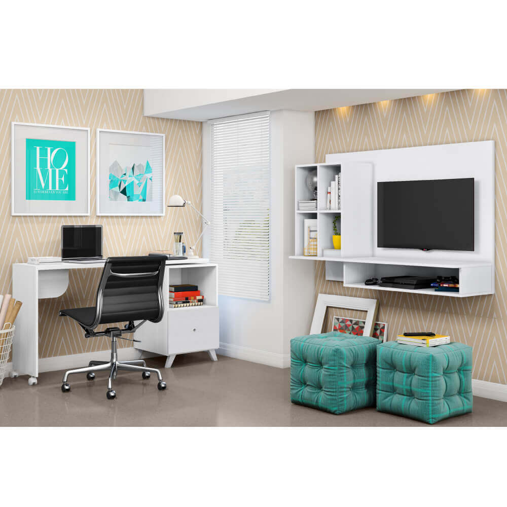 Conjunto Teen Escrivaninha Giratoria E Painel De Tv 37 Branco