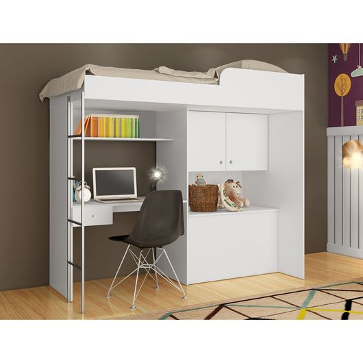Cama Multifuncional Luiza Com Bau E Escrivaninha Branco Leroy