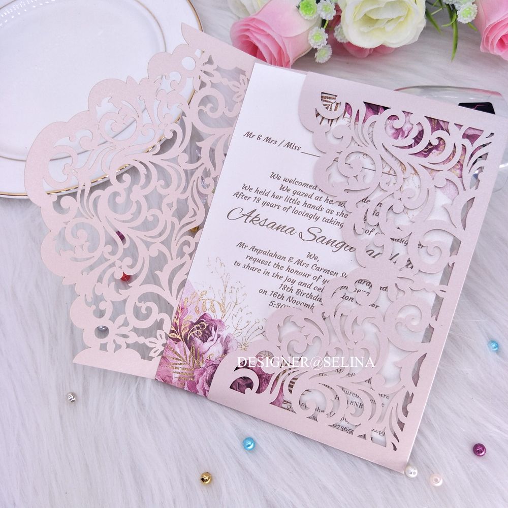 Convite De Casamento Personalizado Laser Wedding Party Pink Gold