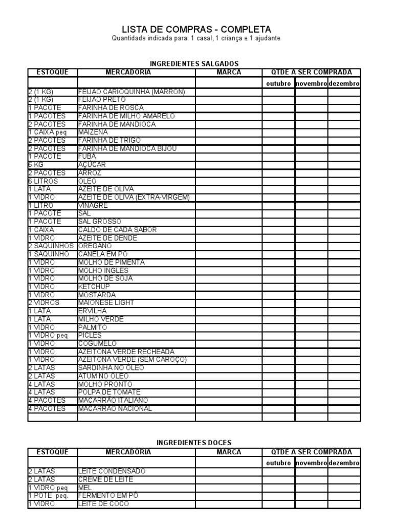 Lista De Compras Supermercado Completa Para 2 Pessoas Pdf Melhores