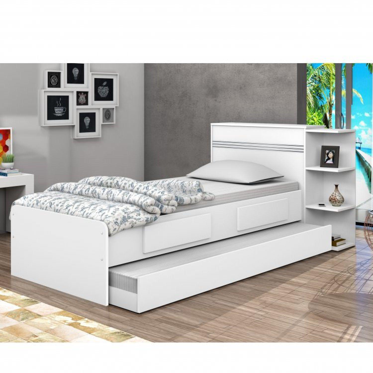 Conjunto Cama Solteiro Jade Com Bau 2 Gavetas E Cama Auxiliar Flex
