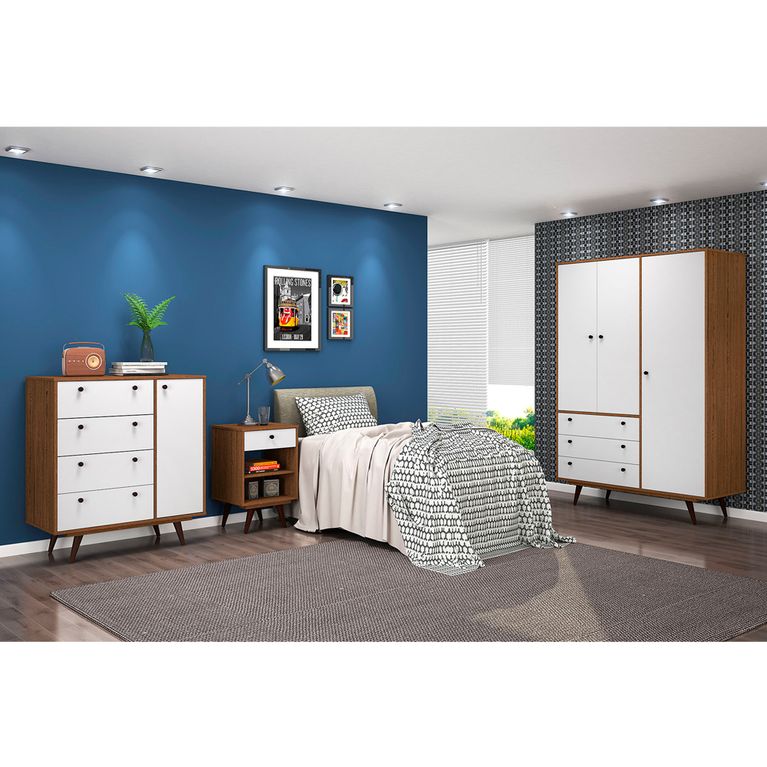 Jogo De Quarto Solteiro Guarda Roupa E Cama Riviera Nogal Vanilla