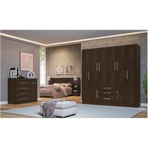 Conjunto Quarto Havana Solteiro Guarda Roupa Star 5 Portas Espelho