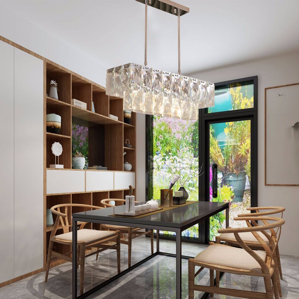 Youlaike Lustre De Cristal Moderno Para Sala De Jantar Retangulo
