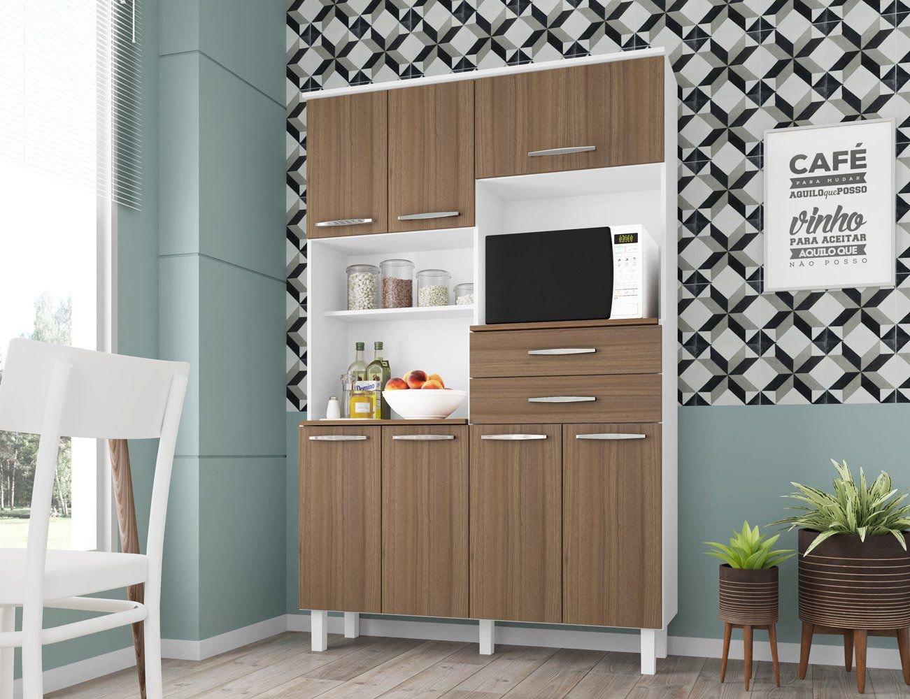 Kit De Cozinha Atenas 8 Portas Branco Castanho Argel Madine