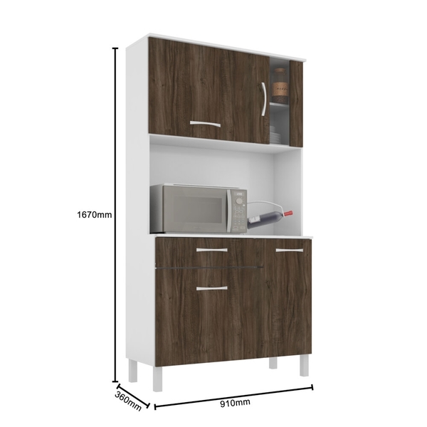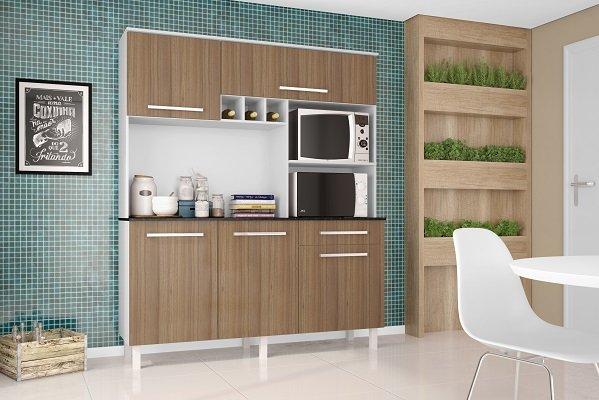 Kit Cozinha Barcelona Castanho Argel Branco Madine Moveis