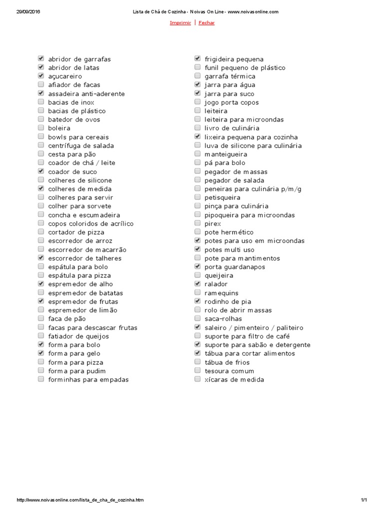 Lista De Cha De Cozinha Noivas On Line Www Noivasonline