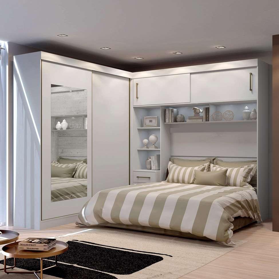 Guarda Roupa Casal Com Cabeceira E Espelho Sparta Flex 4 Pt Branco