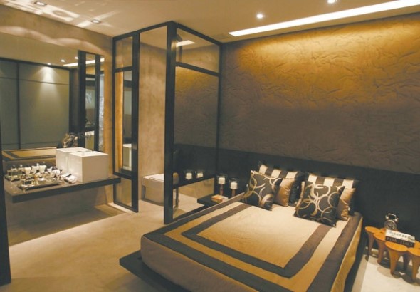 Suite Com Banheiro Integrado Ao Quarto Por Paredes De Vidro