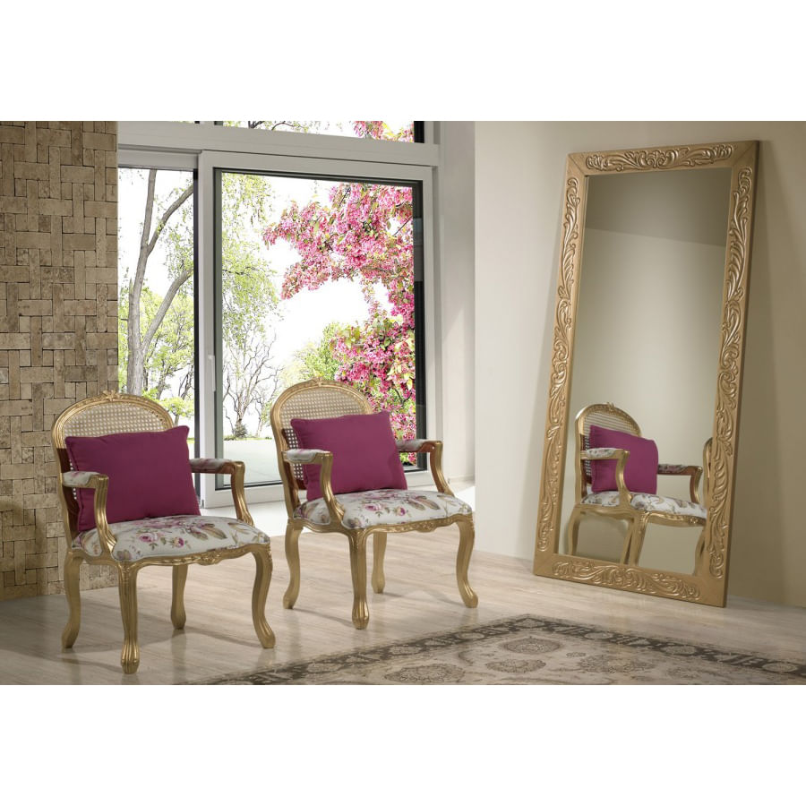 Espelho Grande De Chao Classico Com Moldura Em Folha De Ouro