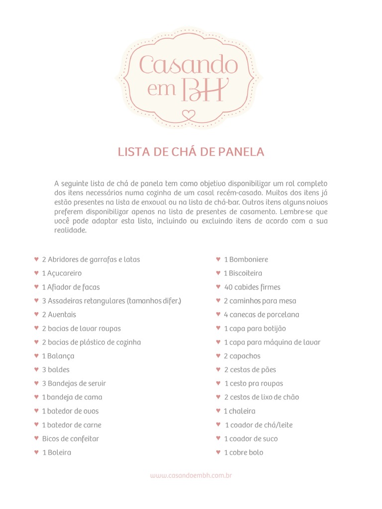 Lista De Cha De Panela Casando Em Bh