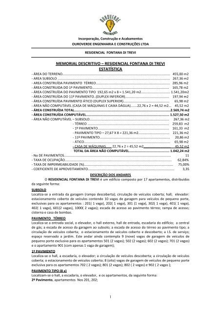 Memorial Descritivo Completo Residencial Fontana Di Trevi