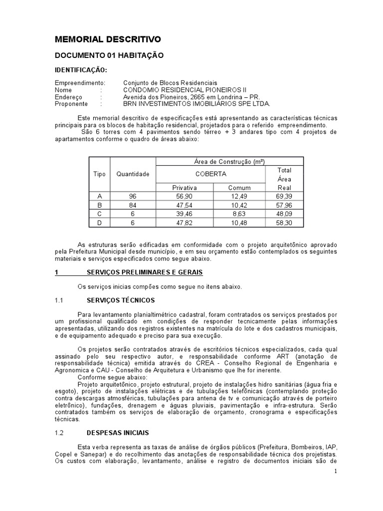 Memorial Descritivo Habitacao E Equip Comunitarios Pdf Free